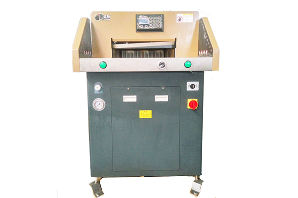 DC-500HT液压程控切纸机,裁切尺寸500mm,采用进口主电机,提供强劲动力,可裁切80mm;进口液压阀件,确保品质。 斜刀切纸技术,裁切更轻松,适合厚纸裁切。 油缸摆动技术,解决切纸动力平衡问题,使工作更可靠。 有效提高裁切精度至±0.2mm,并延长机器使用寿命 。 双导杆推纸技术装置,保证推纸精度,使用更加平稳。 切刀外部微调深浅技术装置,外部调节,方便快捷。