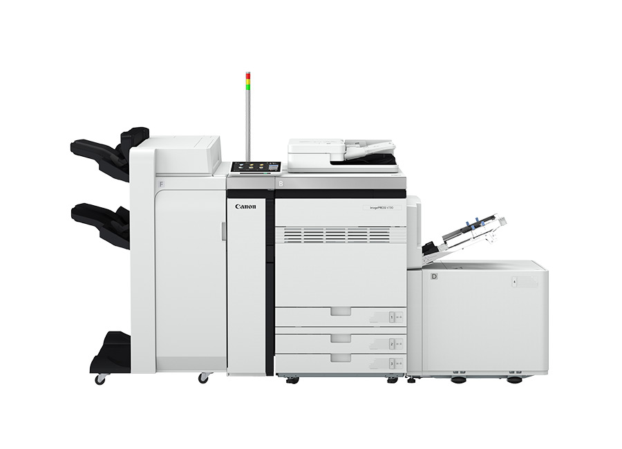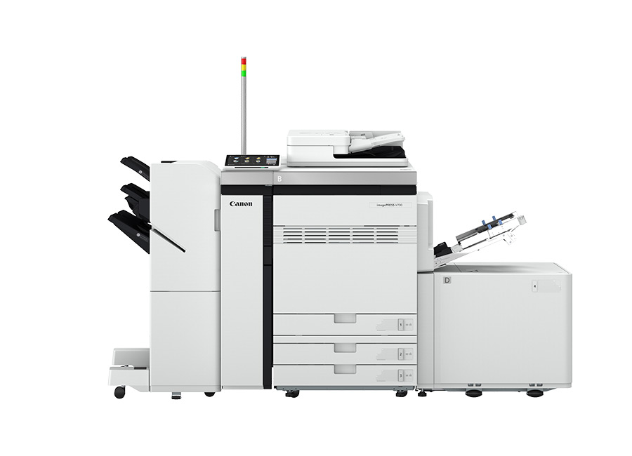 imagePRESS V700是佳能全新推出的轻中量级彩色数码印刷机,该机型延续了imagePRESS品牌久经考验的质量、生产力和多功能性,在上一代机型imagePRESS C710的基础上,统一了主机与配件的外观配色,新增了产能更高的Productivity生产力速度模式,并大幅提升了印刷前设备调整的自动化水平,以更友好的设计帮助经验不足的操作员快速输出正确的色彩!