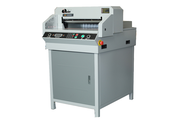 DC-8546K 斜刀切纸专利技术,裁切平稳轻松,独立压纸机构设计,有效解决传统电动机器压纸不紧,提高工作效率, 切位指示线标识,红外激光指示线,清晰明确 ,切纸机调刀深浅专利技术,方便快捷 , 蓝色显示屏显示,红外光栅安全保护电路设计,美观大方。